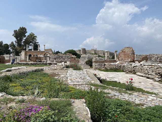 We were scheduled to visit Ephesus (Selcuk) today and, after breakfast in Luminae, met our guide, Huseyin, at the terminal just before 9:30 am. We boarded our van and headed out to visit the House of Virgin Mary first which, once we reached the entrance, I remembered that we had visited this site before. The line was long but it moved pretty quickly. The day was perfect – overcast and cool. We walked through the house that the Virgin Mary was reputed to have lived in during her last days (no photography was allowed) – where St John had brought her after the crucifixion.